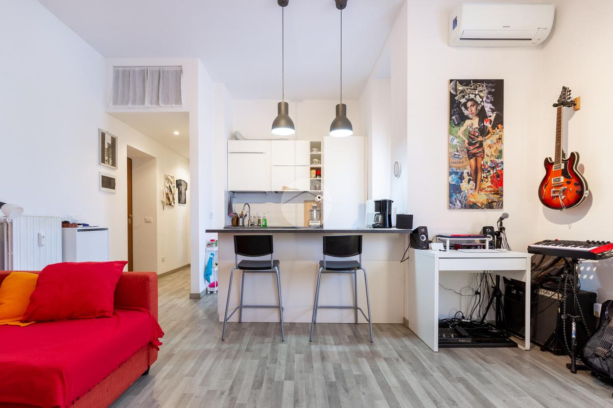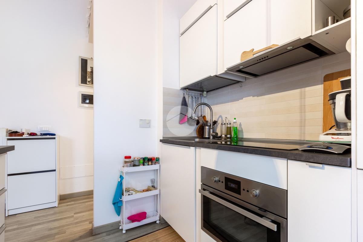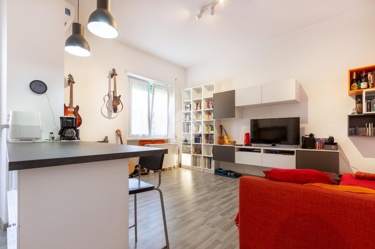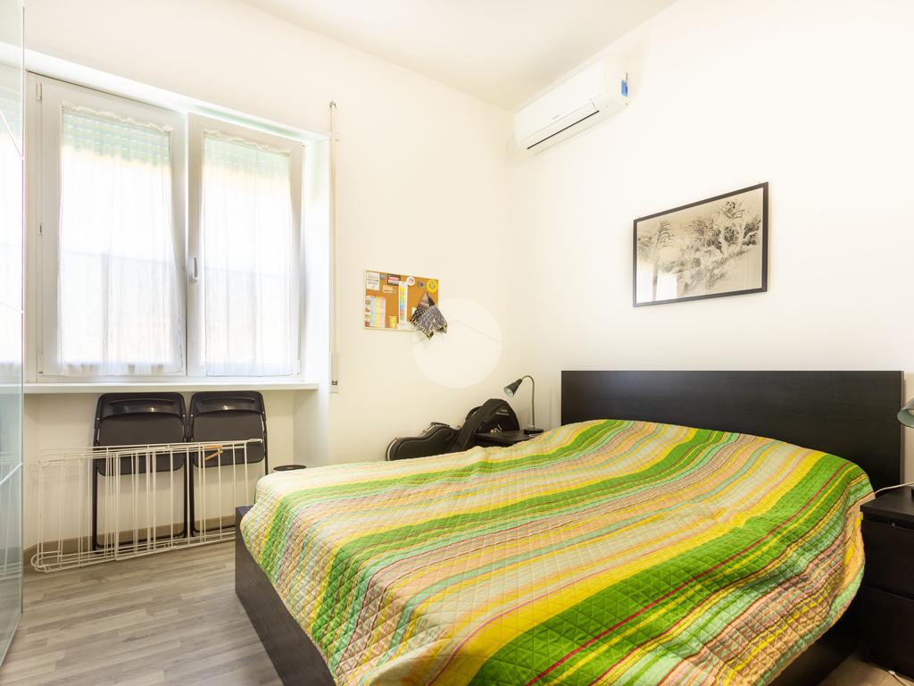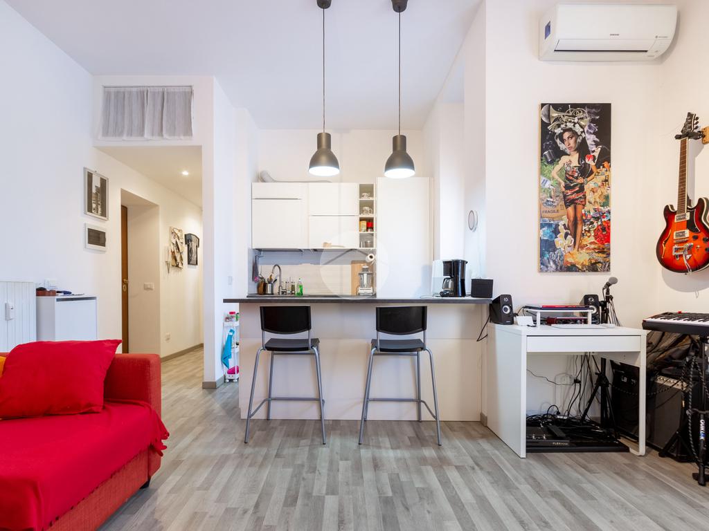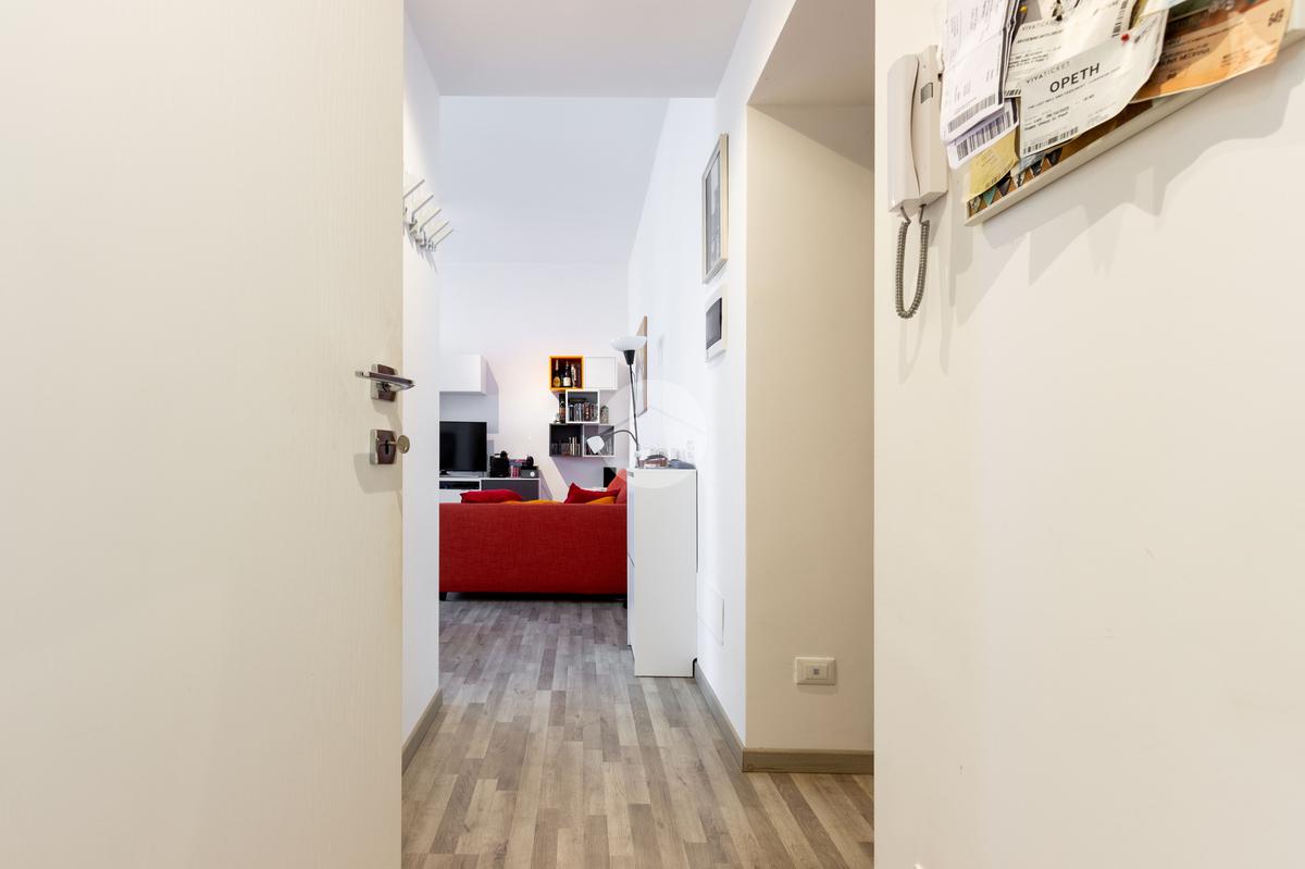 L'immobile è composto da: ingresso, soggiorno con cucina a vista, camera da letto matrimoniale, bagno con box doccia e finestra e un balcone. Internamente si presenta ristrutturato con infissi in doppio vetro e alluminio, riscaldamento centralizzato e condizionatori in camera e soggiorno.