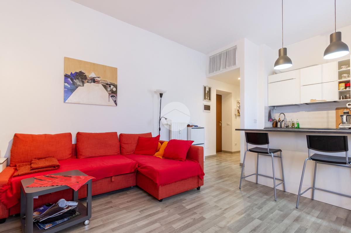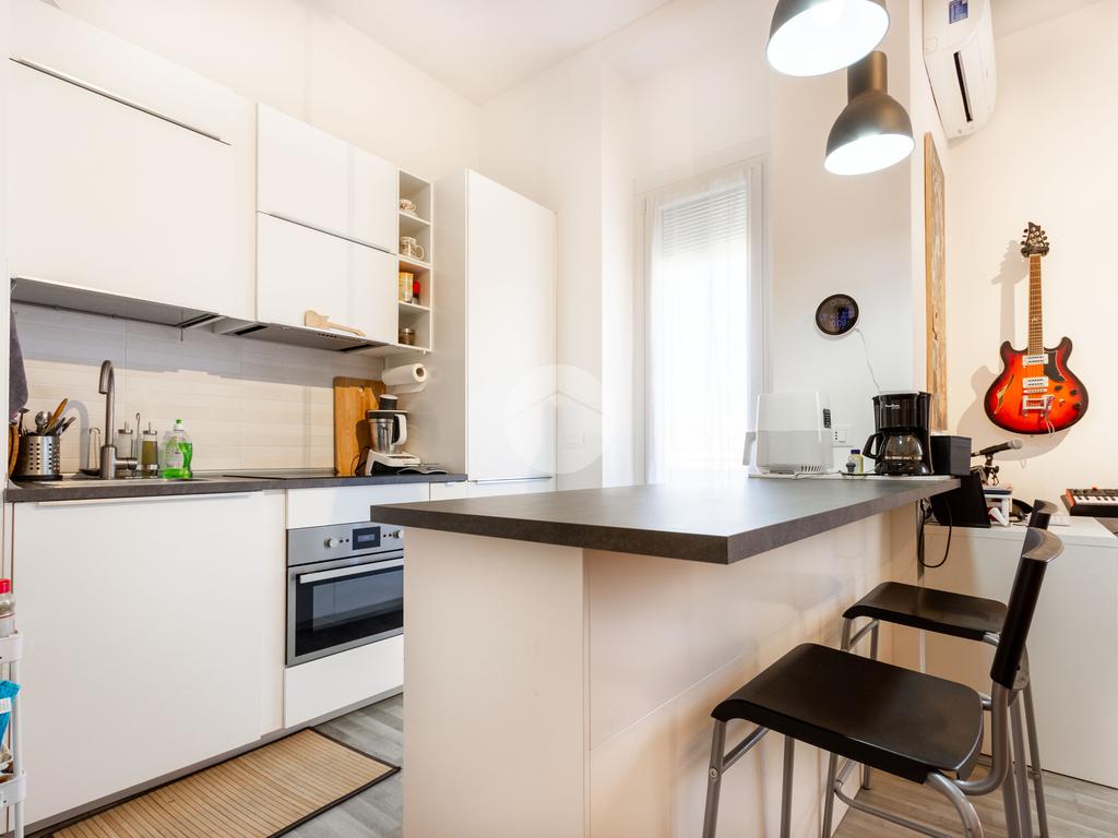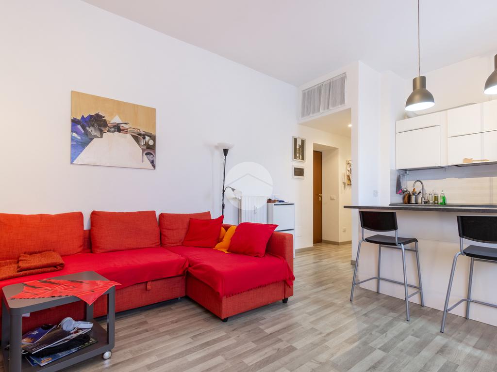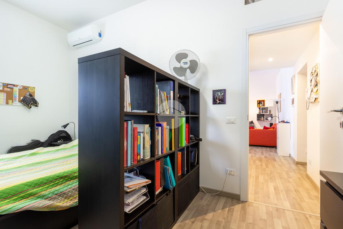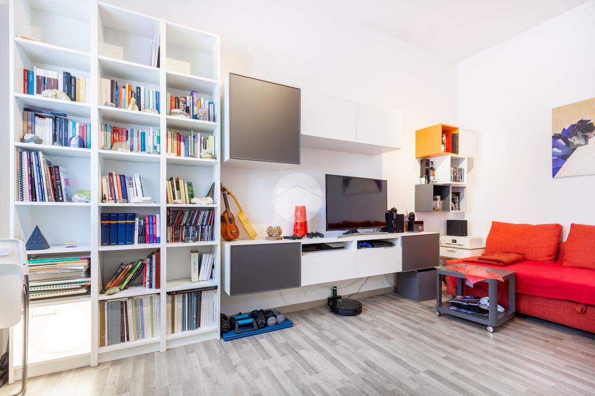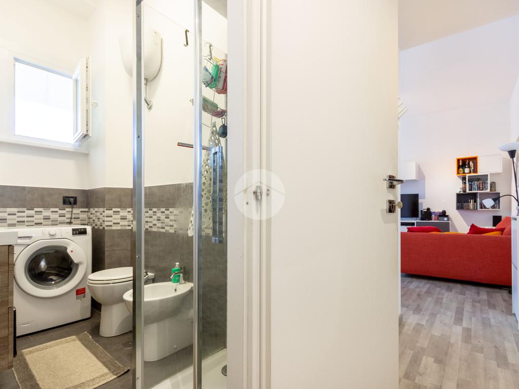 L'immobile è composto da: ingresso, soggiorno con cucina a vista, camera da letto matrimoniale, bagno con box doccia e finestra e un balcone. Internamente si presenta ristrutturato con infissi in doppio vetro e alluminio, riscaldamento centralizzato e condizionatori in camera e soggiorno.