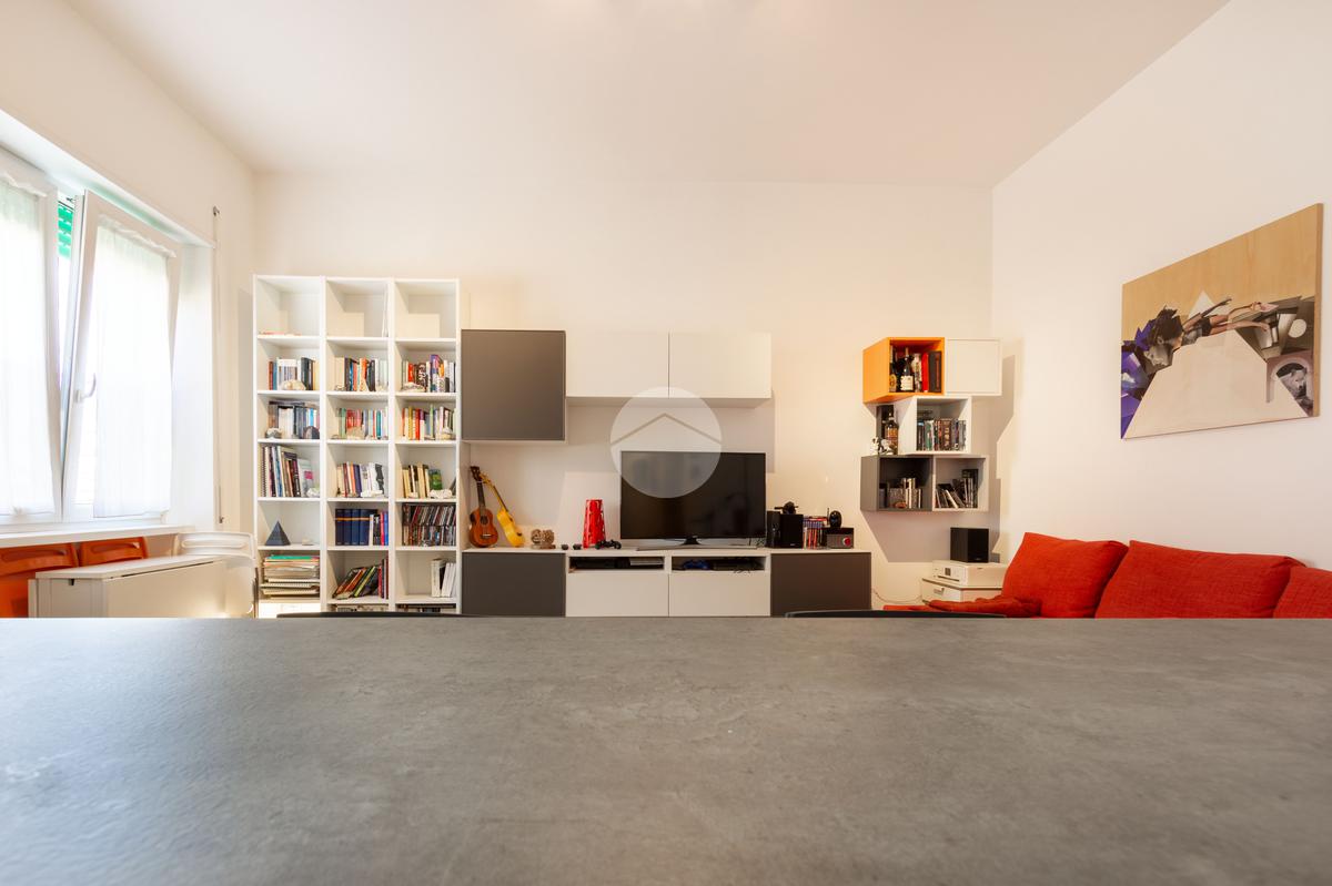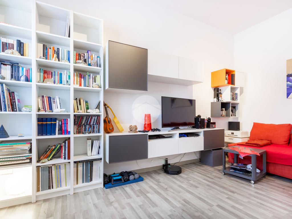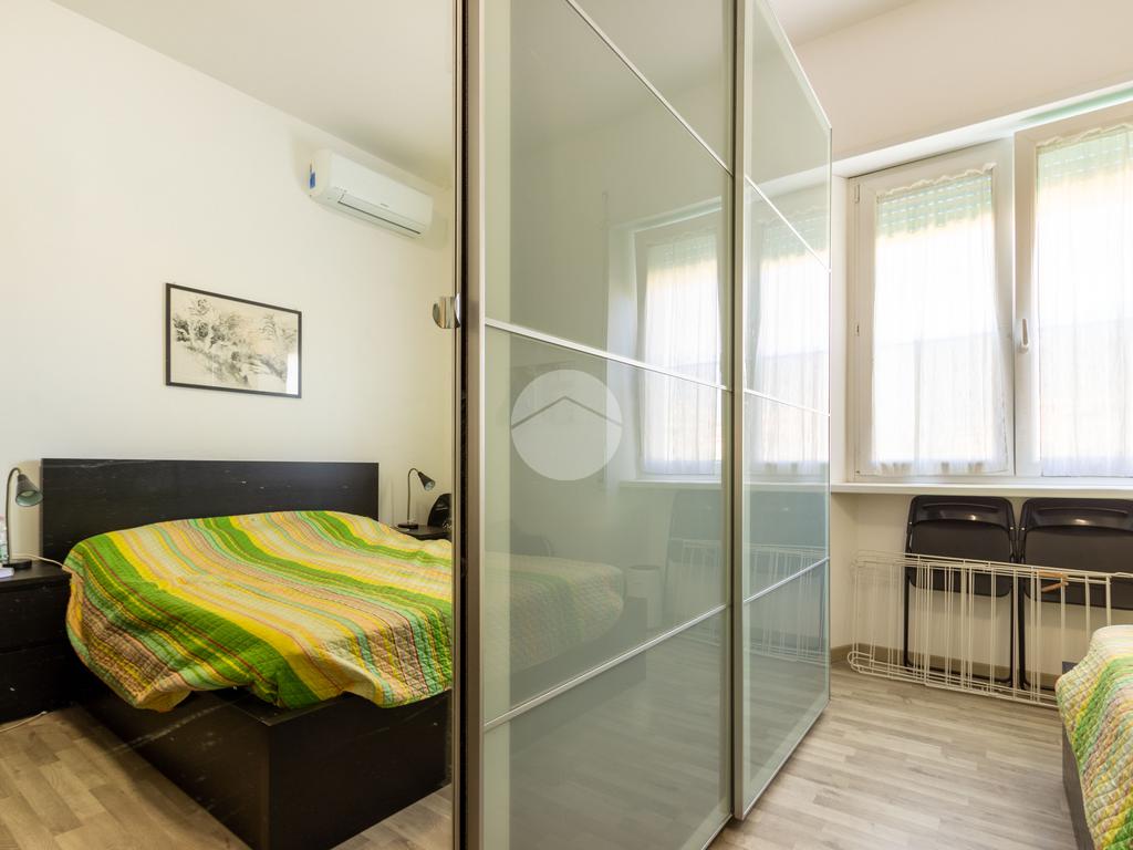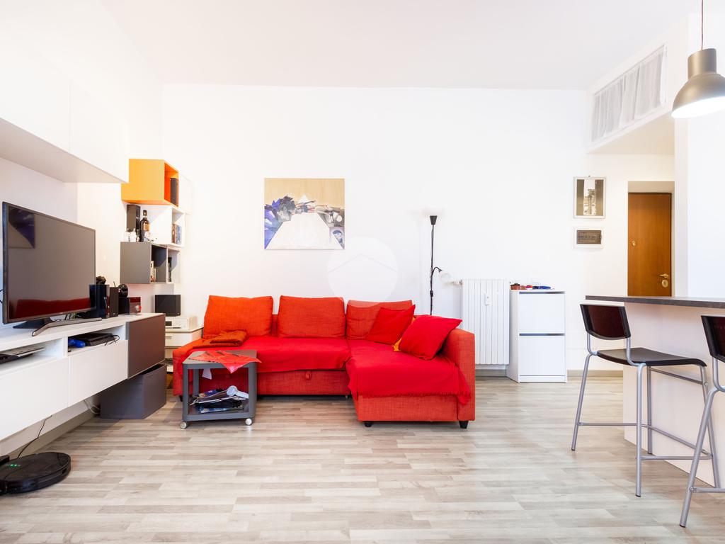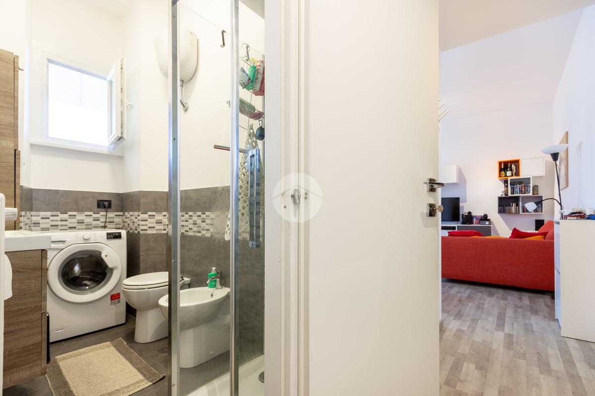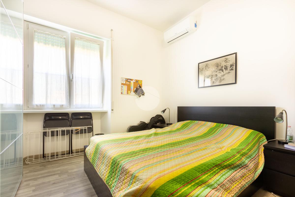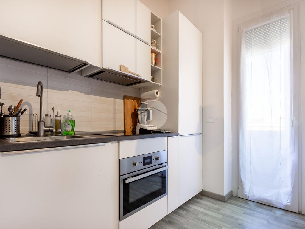 L'immobile è composto da: ingresso, soggiorno con cucina a vista, camera da letto matrimoniale, bagno con box doccia e finestra e un balcone. Internamente si presenta ristrutturato con infissi in doppio vetro e alluminio, riscaldamento centralizzato e condizionatori in camera e soggiorno.