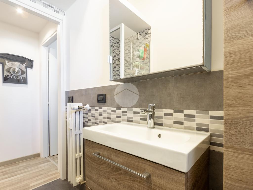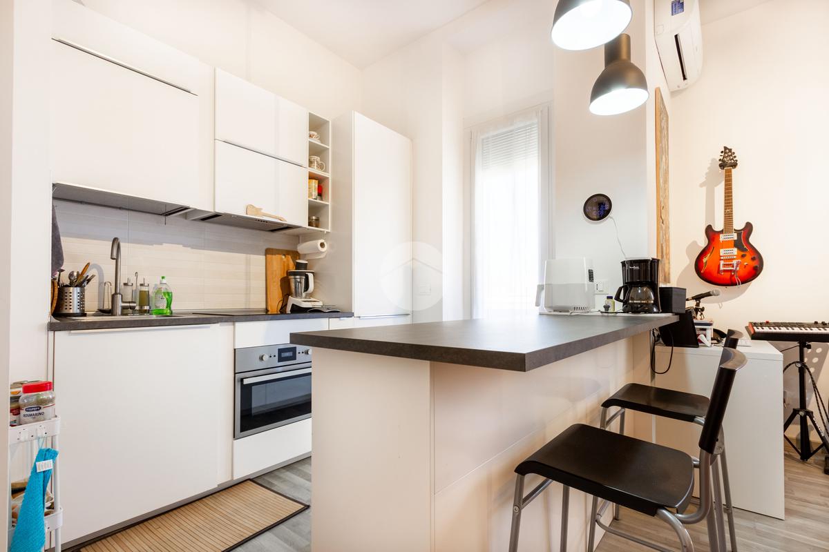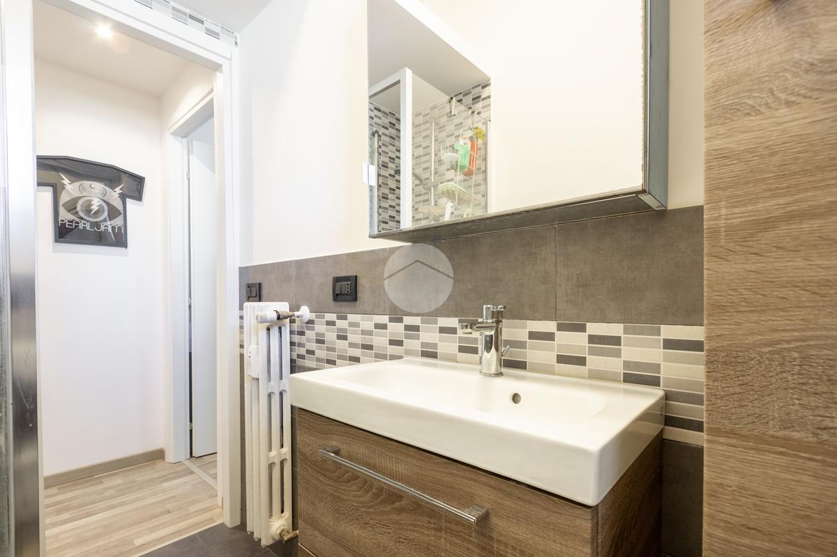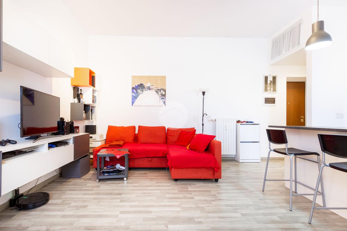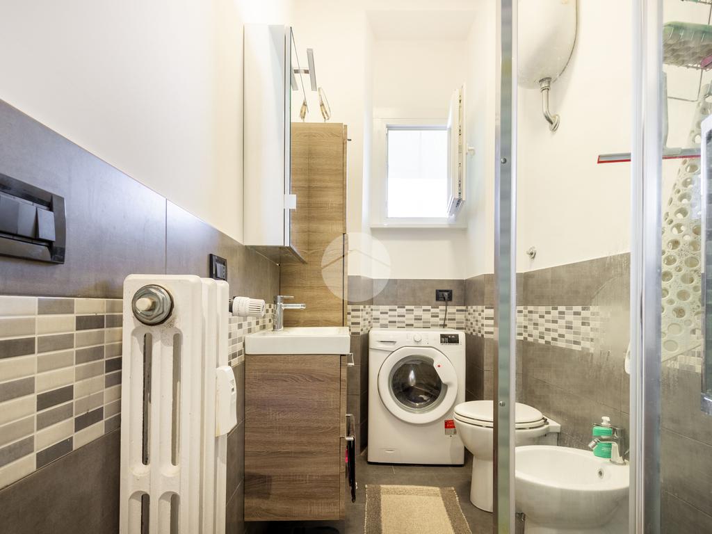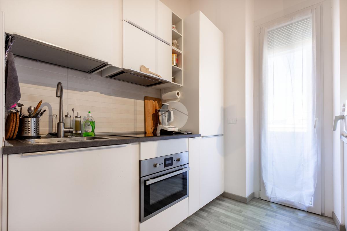 L'immobile è composto da: ingresso, soggiorno con cucina a vista, camera da letto matrimoniale, bagno con box doccia e finestra e un balcone. Internamente si presenta ristrutturato con infissi in doppio vetro e alluminio, riscaldamento centralizzato e condizionatori in camera e soggiorno.