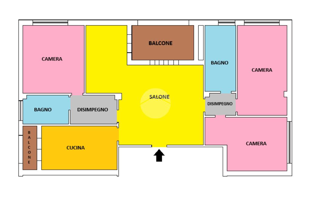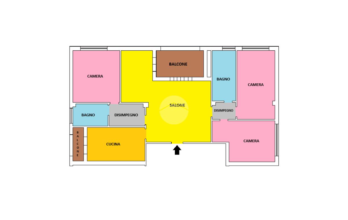 L'appartamento si compone di ingresso, salone con accesso al balcone abitabile, tre camere da letto, con possibilità di ricavarne la quarta, cucina vivibile con accesso a un comodo balcone, doppi servizi entrambi con finestra.