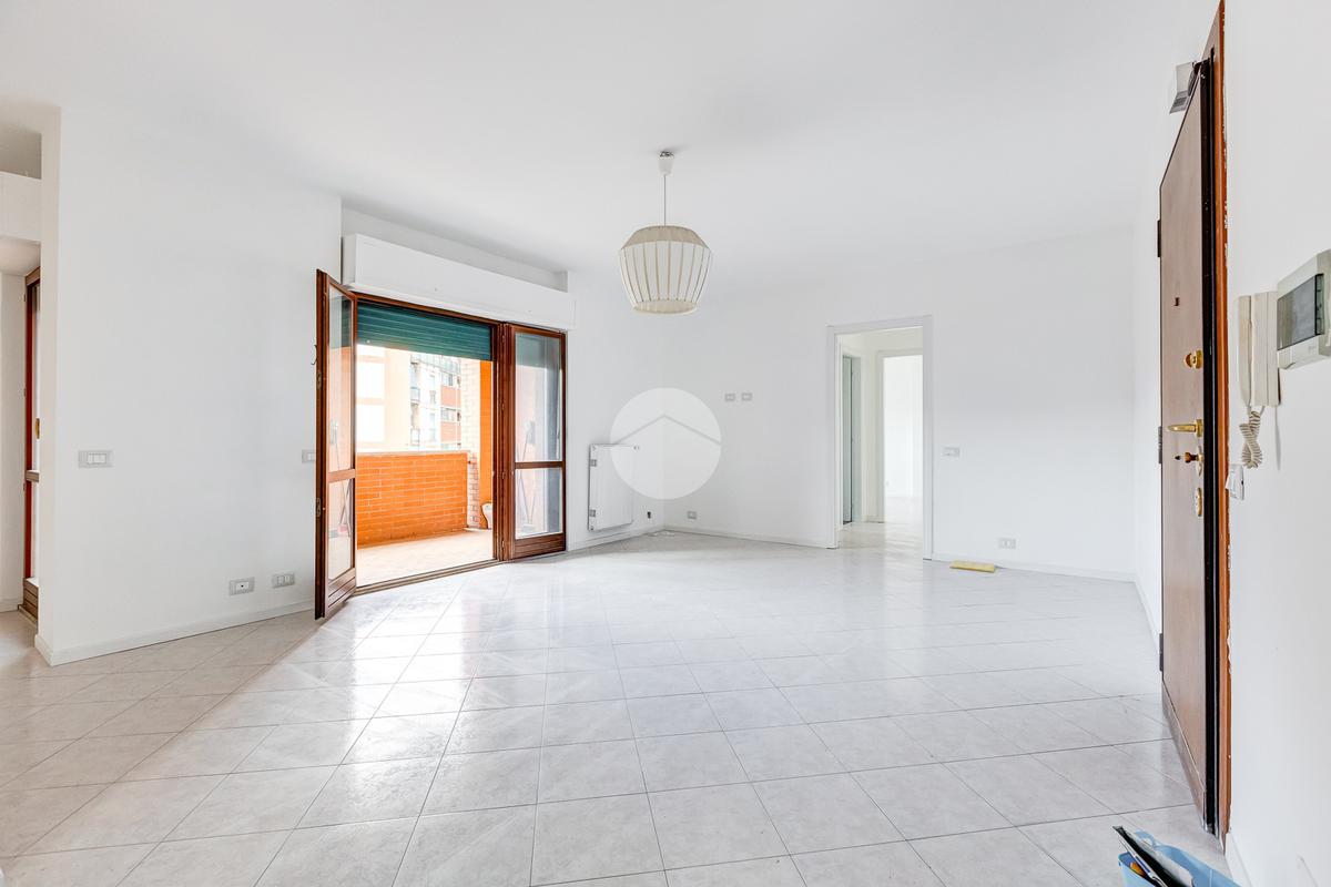 Nella zona commerciale del Nuovo Salario, e più precisamente in via Monte Cervialto, nelle immediate vicinanze della metro B1 di Jonio, stiamo curando la vendita un ampio quadrilocale posizionato al sesto ed ultimo piano di uno stabile in cortina con ascensore.