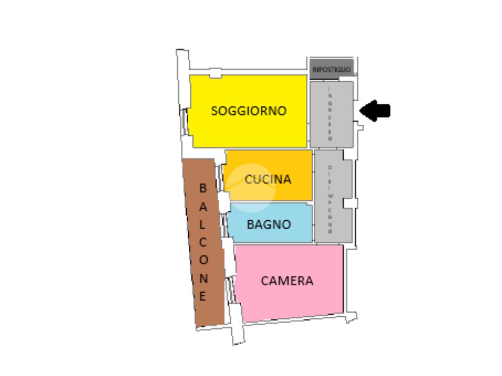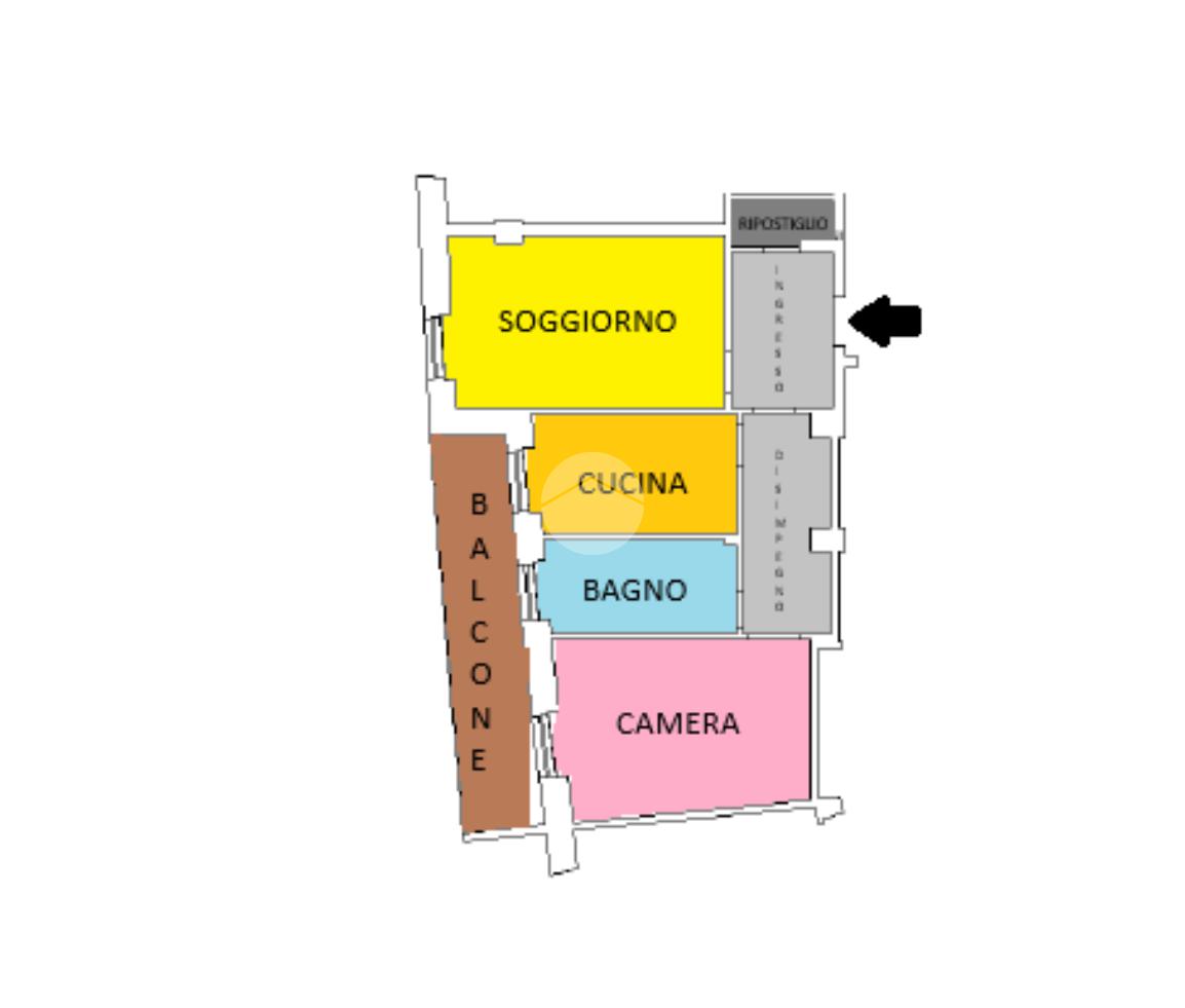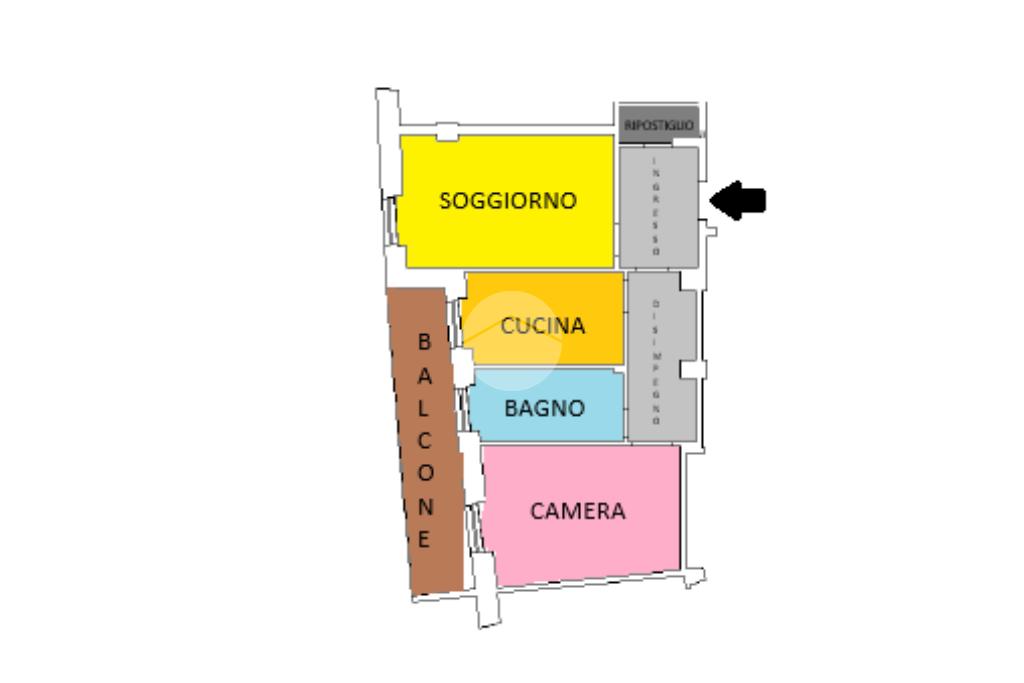 L'appartamento è composto da: ingresso, soggiorno, camera da letto, bagno e balcone.